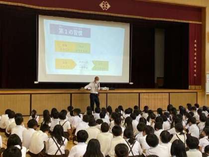 講堂で朝会をしました。