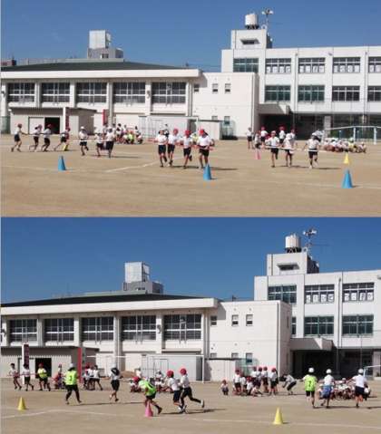 9月28日(月)、青空の下、各学年とも運動場を使って運動会の練習ができました。