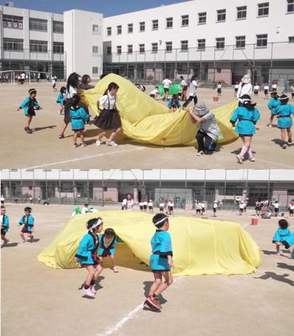 2時間目の休み時間、そら組の子どもたちが団体演技の練習をしました。