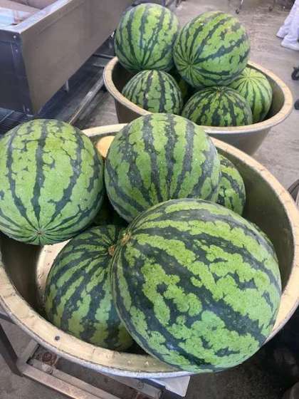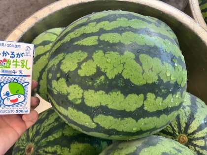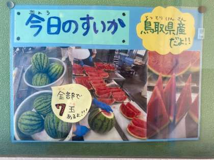 小学校のすいか7玉と中学校のすいか6玉、合わせて13玉のすいかを調理員さんたちが調理してくれました。
