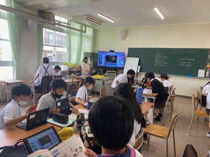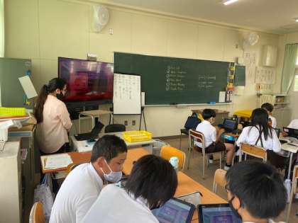 1学期最後の外国語は、ローズ先生が作った問題をタブレットを使って答えました。