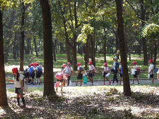 10月9日(金)2年生は、秋の遠足で大泉緑地に行ってきました。天候に恵まれ公園では、予定されていた活動を行うことができました。クヌギやコナラのどんぐりがたくさん落ちていて大喜びで拾い集めました。公園には大きなすべり台があって、少しこわいかな?と思っていたのですが、元気にすべっていました。楽しい1日を過ごすことができました。