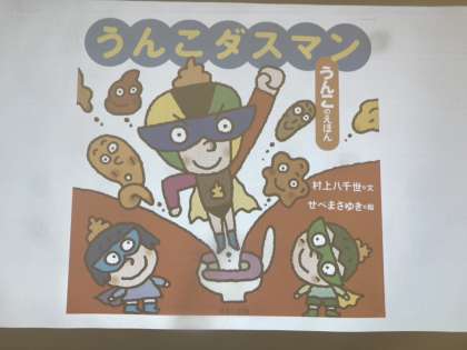 『うんこダスマン』のお話を聞き、お話に出てくる『うんこダスマン』の、毎日健康なうんこを出すじゅつを学習しました。