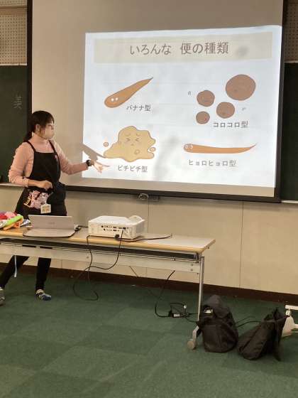 うんちの形や色、においからわかる健康メッセージ、いいうんちを出す方法について学習しました。