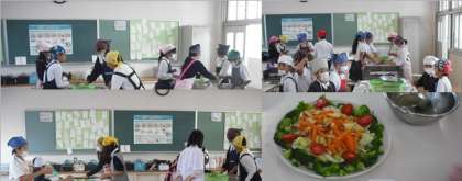 10月30日(金)、5年生は調理実習で温野菜サラダを作りました。