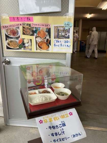 今日は、卒業生をお祝いする給食のメニューでした!