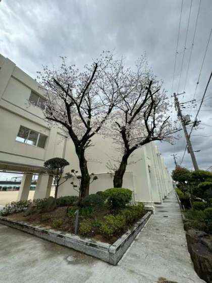 学校の桜も見ごろを迎え、新入生を歓迎しているようです。