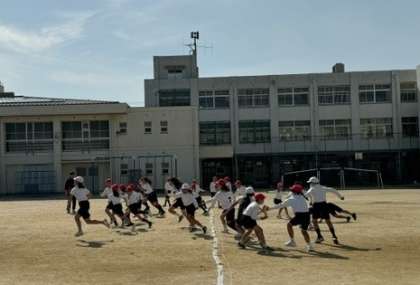体育の学習の導入で、「ねことねずみ」を行っていました。