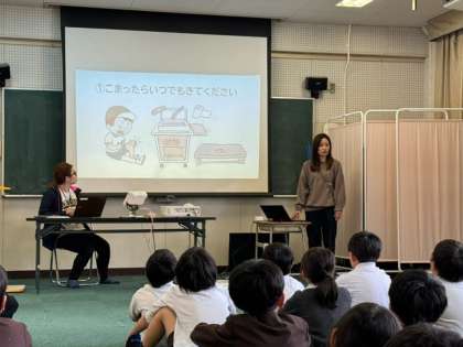保健室の使い方について、養護教諭の先生からおはなしを聞きました。
