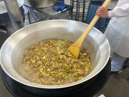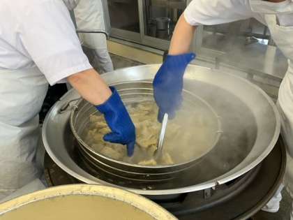 給食「焼きそば」の調理