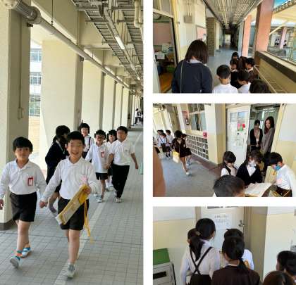 2年生が1年生を案内しながら、「校内たんけん」を行いました。