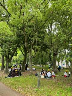 楽しくいただいてます。虫を見かけて大騒ぎの子もいます。
