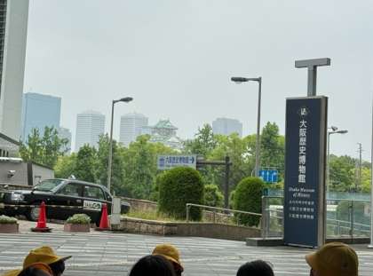 少し雨模様ですが、無事到着。なんとか大阪城も見えました。