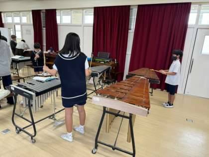 音楽科の学習で、合奏「ラバーズ コンチェルト」に取り組んでいました。音楽室で活動していました。