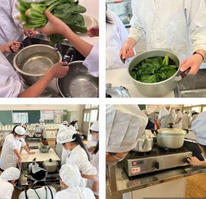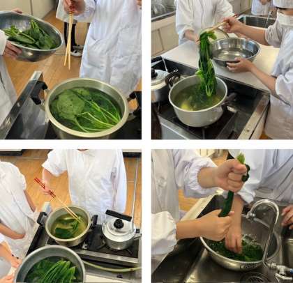 今日は、「ほうれん草のおひたし」と「お茶」を作ります。ガスコンロも初めて使います。