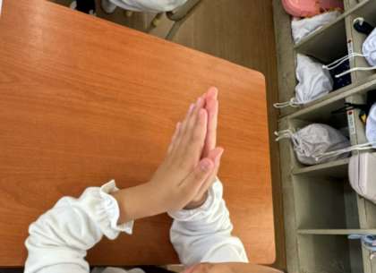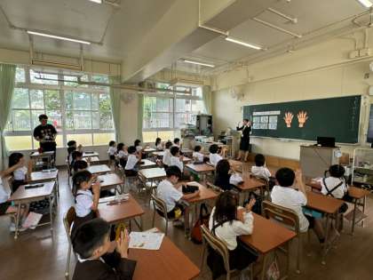 ?「あわあわ手洗いのうた」に合わせて、洗い方の練習をしました。