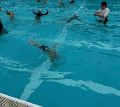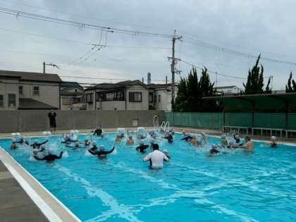 シャワーは少し冷たく感じたようですが、水の中では、気持ちよく学習できたようです。