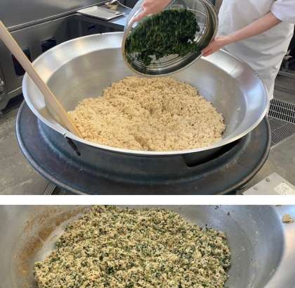 とりなっ葉いためは、あっさりとした中にうまみが詰まっていて、ごはんにふりかけて美味しく頂きました。いわしの天ぷらは、甘辛いタレをかけていただきます。