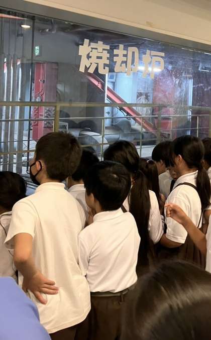 焼却炉の様子です。ごみを燃やすと、灰になってかさが15分の1になります。