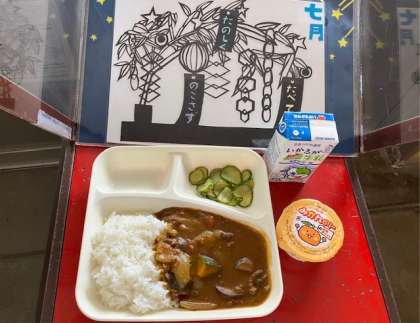 なすやかぼちゃなどのや夏野菜が入っていました。しっかり食べて夏バテ防止に努めてくださいね。