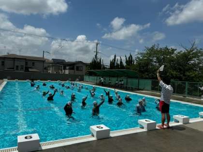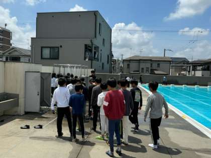衣服を着たままプールに入る事の違和感を感じながら、命を守るための方法について学習していました。