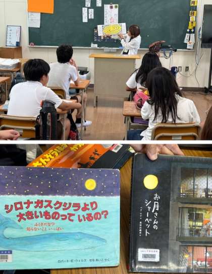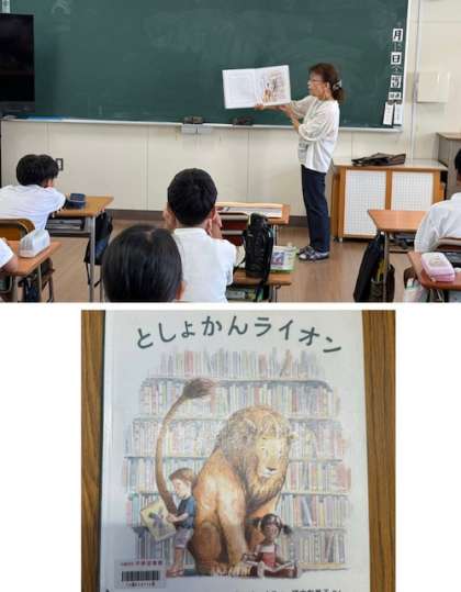 1組は「としょかんライオン」、2組は「シロナガスクジラより大きいものっているの?」「お月さんのシャーベット」を読んでいただきました。
