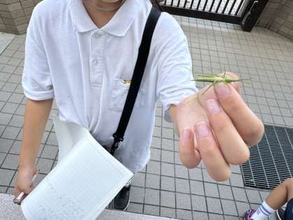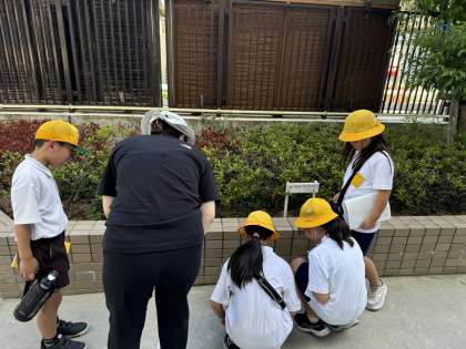 1時間目の理科の時間に、正門近くで虫を探していました。