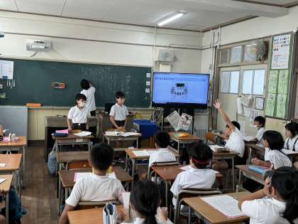 話し合いの学習をしていました。テーマに沿ってよく手を挙げ発表していました。