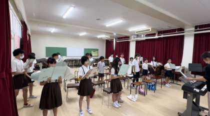 歌唱の練習をしていました。ソプラノパートの高音や、アルトバートのメロディーの掛け合いがとても上手でした。