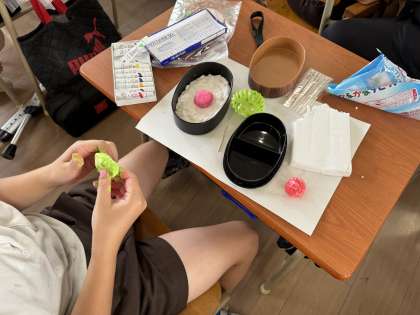 紙粘土でお弁当作りをしていました。手先が器用な児童もいて、本物そっくりでおいしそうでした。
