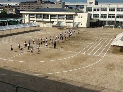 音楽に合わせて運動会の表現運動にチャレンジしています。