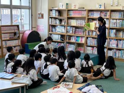 学校図書館司書の先生に読み聞かせをしていただいています。