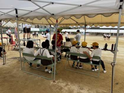 運動場では開閉会式の練習や準備係のリハーサル、放送機器の調整など行っていました。