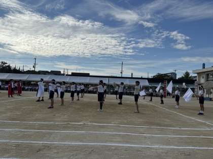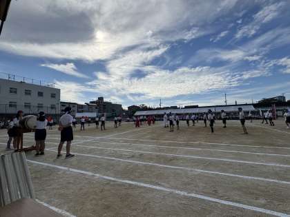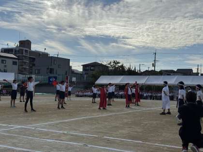 応援団の皆さんが、運動会を盛りあげます。両団長の声が大空に響き渡っていました。