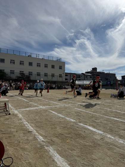6年生のリレーです。さすがの6年生、走るスピードが違います。迫力満点のバトンパスがかっこよかったです。