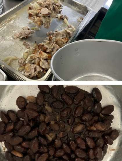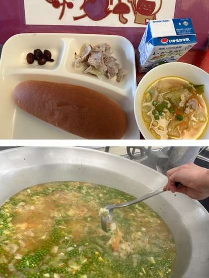 うずら豆のグラッセは、甘辛く煮てあり、程よい固さでおいしく仕上がっていました。スープにもたくさん豆(グリーンピース)が入っていました。