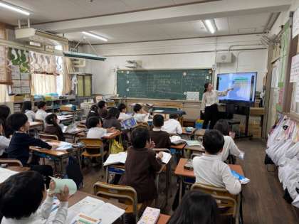 今日は、4の段の九九のつくりかたを学習しました。これまで習った学習を思い出して、自力で頑張っていました。