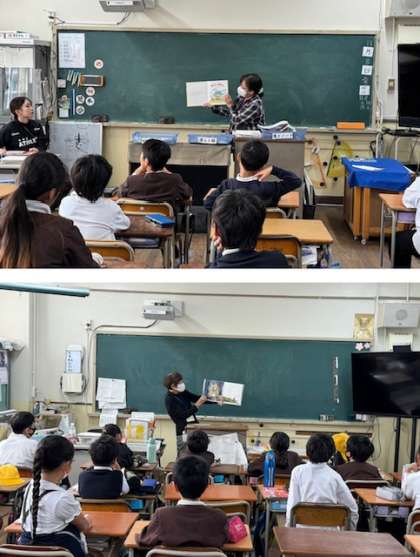 キャンディさんの読み聞かせがありました。今日は3、4年生の教室で1時間目の前に読んでいただきました。