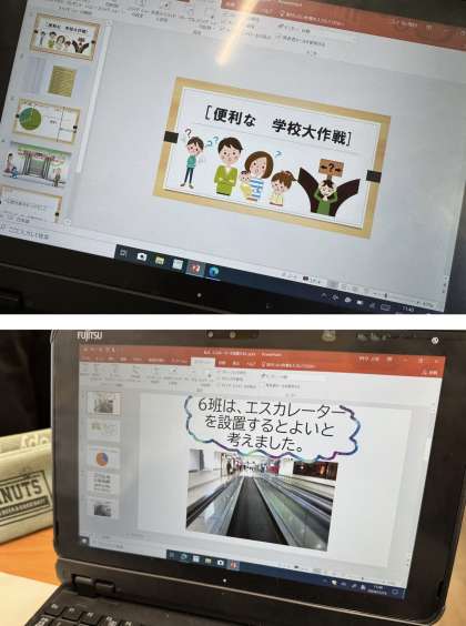 自分たちの学校生活をよりよくするための工夫を考え、資料を使ってプレゼンテーションで提案しよう、というめあてで学習しました。
