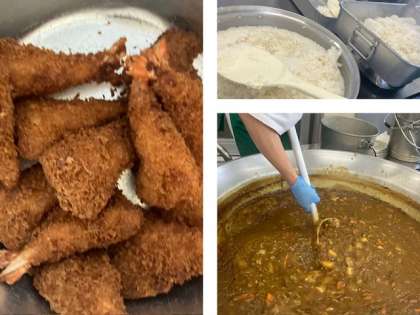 カレーライスにサクサクのエビフライがのっていて、特別な感じでした。