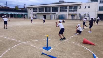 体育科の学習でティーボールを行いました。本校卒業生の矢野さんに近づけるよう頑張っています。