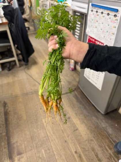 なかよし学級前の小さな学習園で育ったにんじんです。とても小さく可愛いにんじんでした。