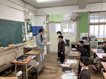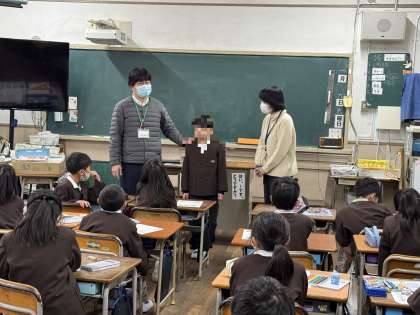 来日した児童の日本語指導が修了し、今日はクラスの友達の前で修了証が授与されました。よく頑張りましたね。