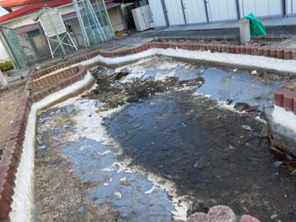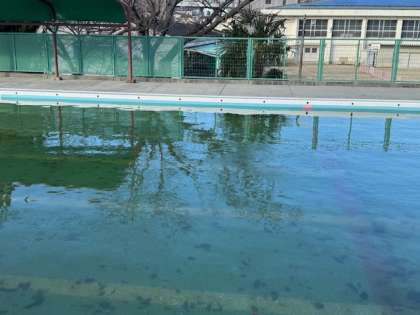 今は使われていないビオトープでは、かなり厚い氷が張っていました。