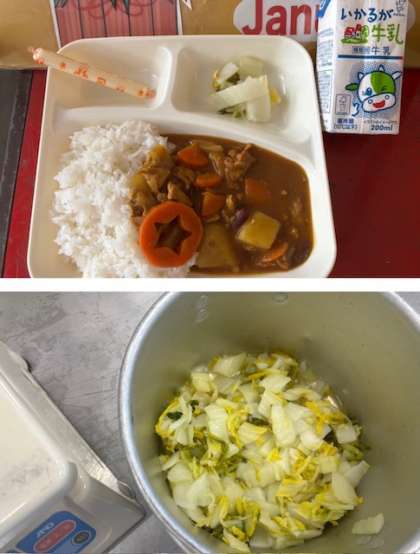 ラッキーにんじんの献立です。カレーライスにはラッキーにんじんが、入っていることがあります。食べながら見つけることが出来たでしょうか?