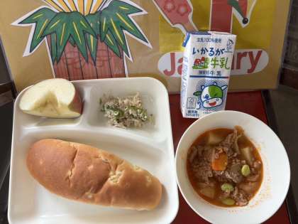 今日のりんごの産地は長野県です。サンふじという品種です。程よい酸味がりんごの甘みを引き立てていました。