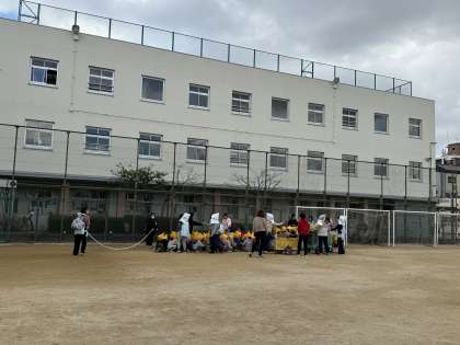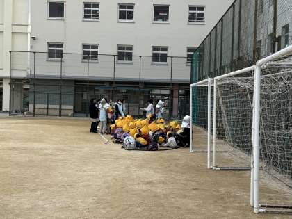 在園中に大きな災害が起こった時の2次避難の訓練を行うために来校しました。