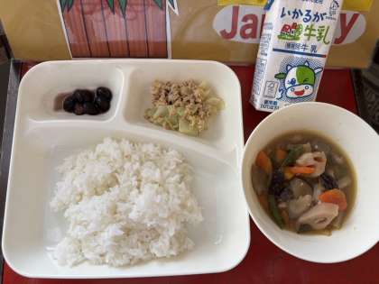 筑前煮には、ごぼう、れんこん、こんにゃく、しいたけ、にんじん、鶏肉が入っています。福岡県の郷土料理です。