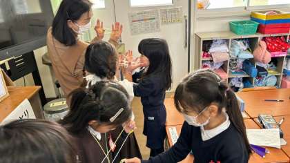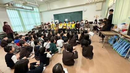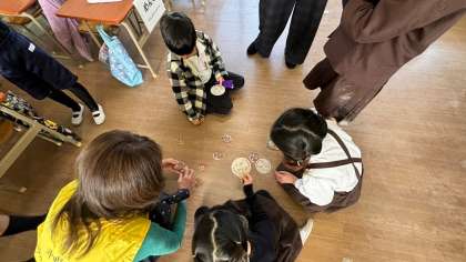 地域の方をお迎えし、昔遊び体験を行いました。司会やあいさつ担当の児童が発表したのち、昔遊びを開始しました。