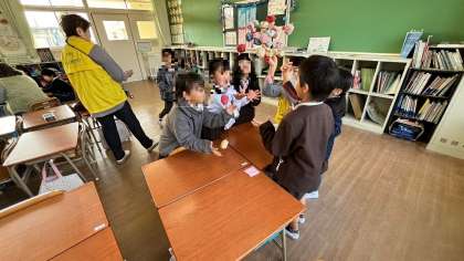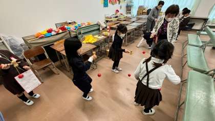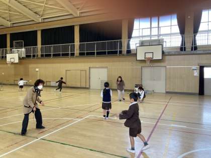教室だけでなく、児童会室や体育館でも昔遊びを行いました。